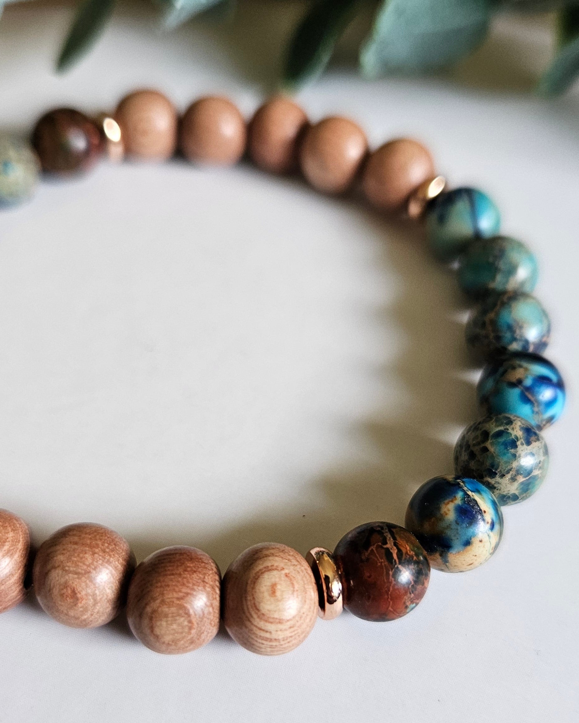 Coastal Drift Bracelet | Ocean Blue Sea Sediment Jasper and Rosewood for Calm and Connection